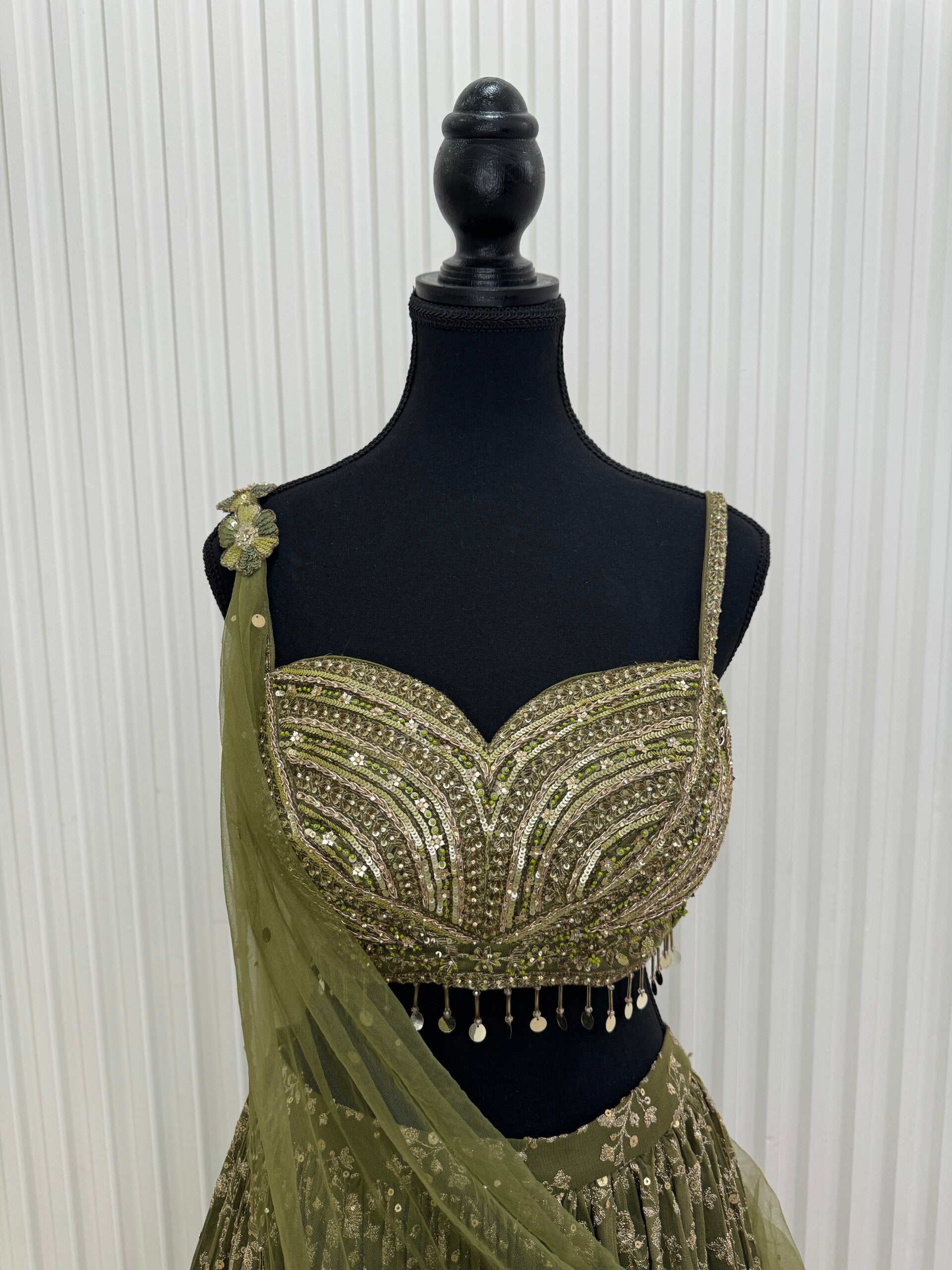 Erlebe die Eleganz von Basil Grün, erlebe zeitlose Schönheit mit unserem Basil Grünen Lehenga.